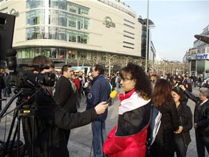 Nach einem zweistündigen Marsch durch die Frankfurter Innenstadt gelangte der Menschenzug an die Hauptwache zur Abschlußkundgebung. An diesem zentralen Ort der Mainmetropole hatten viele Gruppen Informationsstände aufgebaut und verteilten Broschüren und Flugblätter.
